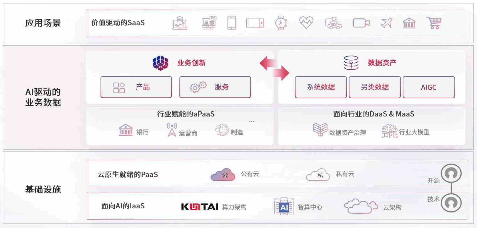 数字时代,,,围绕企业数字化转型的关键要素,,,3223.bet数码开创性的提出数云融合战略和技术体系框架,,着力在云原生、、、数字原生、、、、AI原生和信创产业上架构产品和服务能力,,,为处在不同数字化转型阶段的快消零售、、、、汽车、、、、金融、、、、医疗、、、政企、、教育、、、、运营商等行业客户提供泛在的敏捷IT能力和融合的数据驱动能力,,,构建跨界融合创新的数字业务场景和新业务模式,,助力企业级客户建立面向未来的核心能力和竞争优势,,,全面推动社会的数字化、、、、智能化转型升级。。