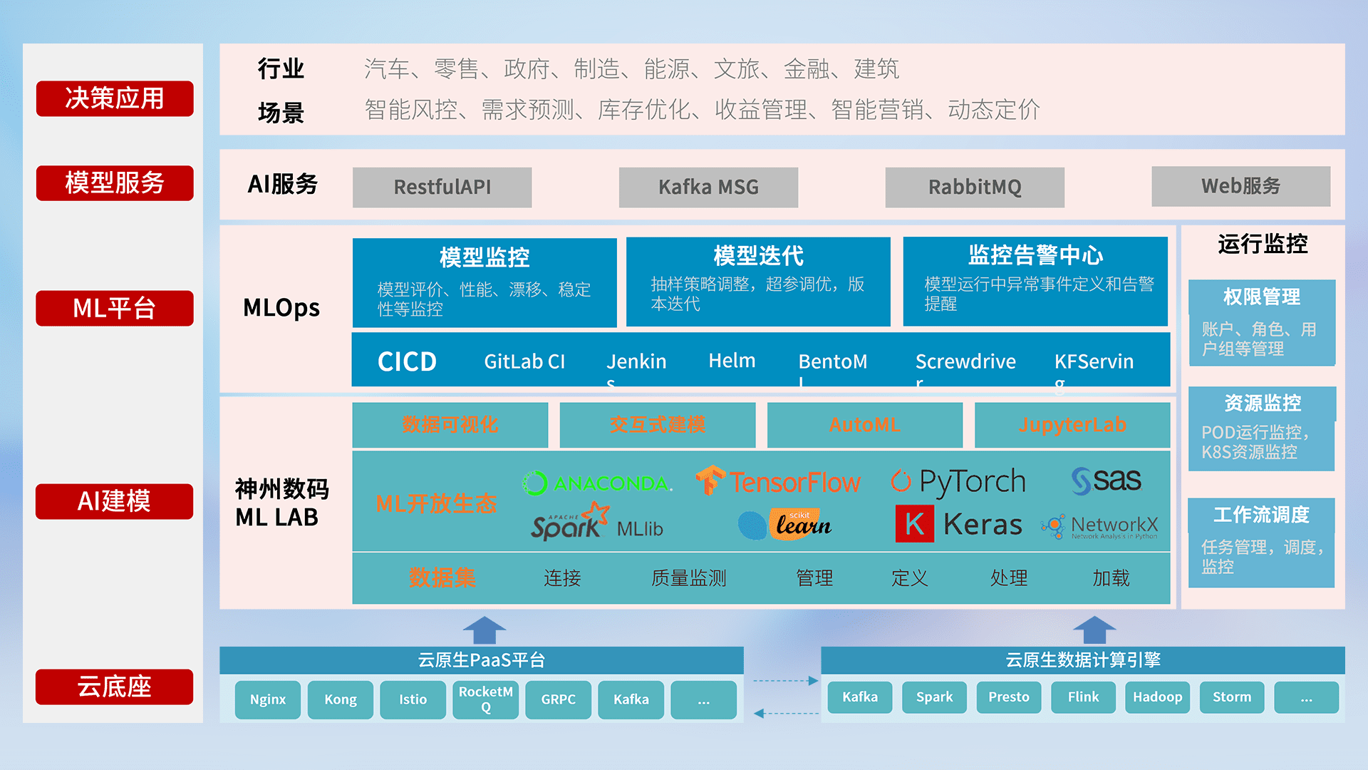 数据+模型双引擎驱动,,面向智能服务场景,,快速灵活利用AI技术,,,支持业务决策,,助力企业智能化转型破局。。。